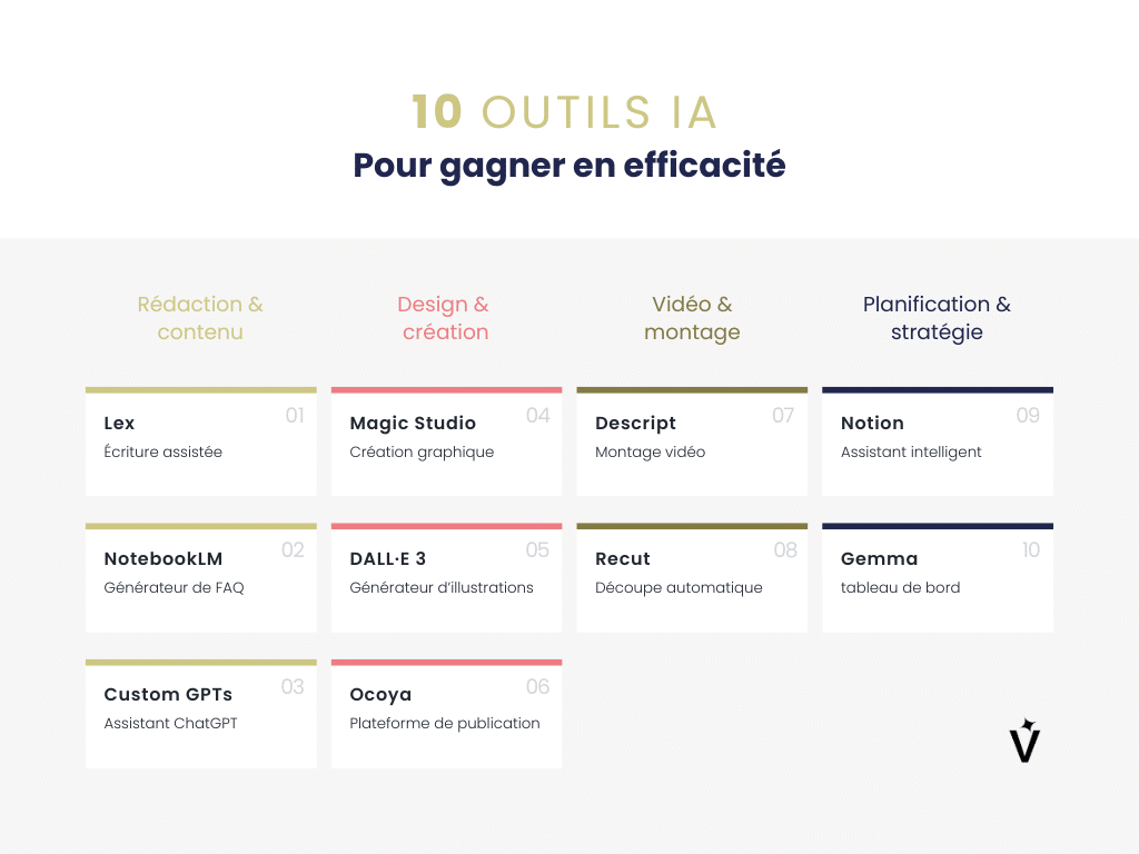 L’important n’est pas de tout utiliser à la fois, mais de choisir l’outil le plus pertinent pour chaque tâche et de l’intégrer progressivement à son organisation. Avec ces assistants intelligents, chaque équipe peut produire du contenu plus efficacement, structurer ses projets et explorer de nouvelles idées sans perdre en qualité.